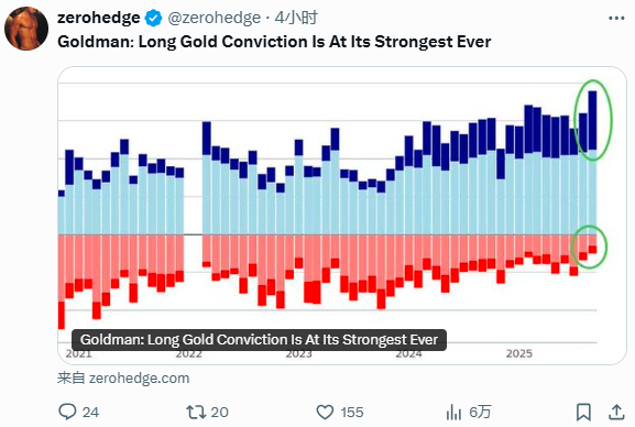 根据高盛近日发布的一份报告,黄金在本月已成为投资者最青睐的多头交易,当前市场人士看涨黄金的信念达到了“有史以来最强”的水平——看多与看空黄金人士的比例已接近8比1。