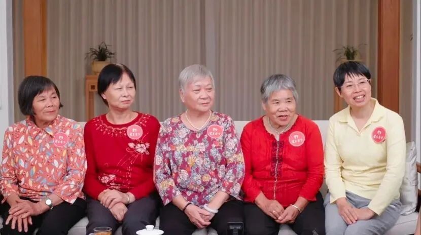 11月10日张玉欢奶奶(左一)和她的姐妹分享爱心餐厅的故事。