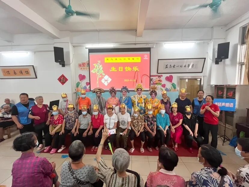 老人们在这里读诵经典、唱歌、分享;这里每月都有集体生日会、义诊、义剪;逢年过节,还有蓝态公益合唱团和各界爱心人士来慰问,粤剧演唱和文艺演出等活动。